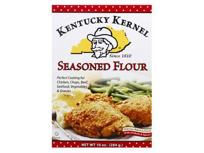 The Kentucky Kernel Seasoned Flour is crafted with a blend of enriched and bleached wheat flour, combined with a mix of natural spices, extracts, and herbs. This combination creates a rich and savory flavor profile that enhances the taste of chicken, chops, beef, seafood, vegetables, and gravies. Whether you're baking or frying, this seasoned flour provides a perfect coating that delivers a crispy, golden finish.