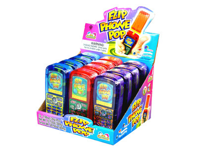 Introducing the Flip Phone Pop 12ct, a fun and nostalgic treat that kids will love. Each Flip Phone Pop features a lollipop designed to look like a classic flip phone, complete with buttons and a screen. Available in assorted flavors such as grape, watermelon, and blue raspberry, these pops are perfect for adding a playful twist to any candy selection. Ideal for store owners looking to offer their customers a unique and entertaining candy option, Flip Phone Pops are sure to be a hit with children and adults alike.