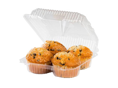 Hinged 4-Compartment Large Muffin Container #LBH6404